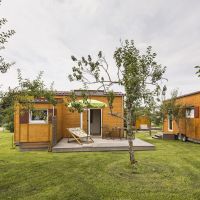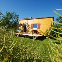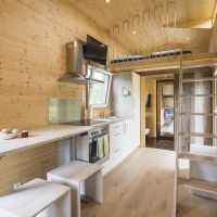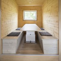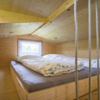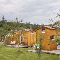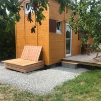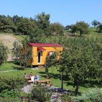 Die Tiny-Houses in 2 unterschiedlichen Größen aus ökologischer Bauweise mit eigener Terrasse stehen auf einem Trailer. Das Tiny-House 1 (30qm) kann für 2 Personen, die Tiny-Houses 2 & 3 mit zusätzlichem Slide-Out Essbereich (36qm) für bis zu 4 Personen (2 Erwachsene und 2 Kinder) gebucht werden. Alle Häuschen haben eine Schlafempore in der Größe von 7qm mit einem 1,80m Bett, sowie ein Sofa welches zu einem 1,20m Bett umgeklappt werden kann.
